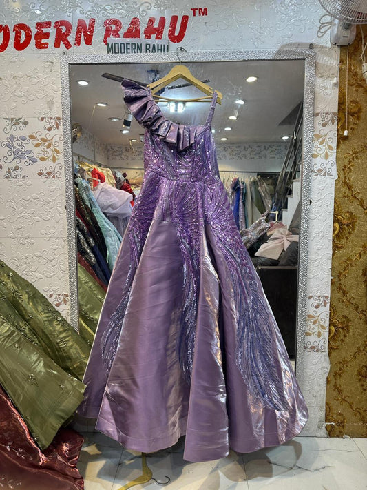 Metallic Purple One-Shoulder Sequin Ball Gown – Ruffled Strap Evening Party Dress