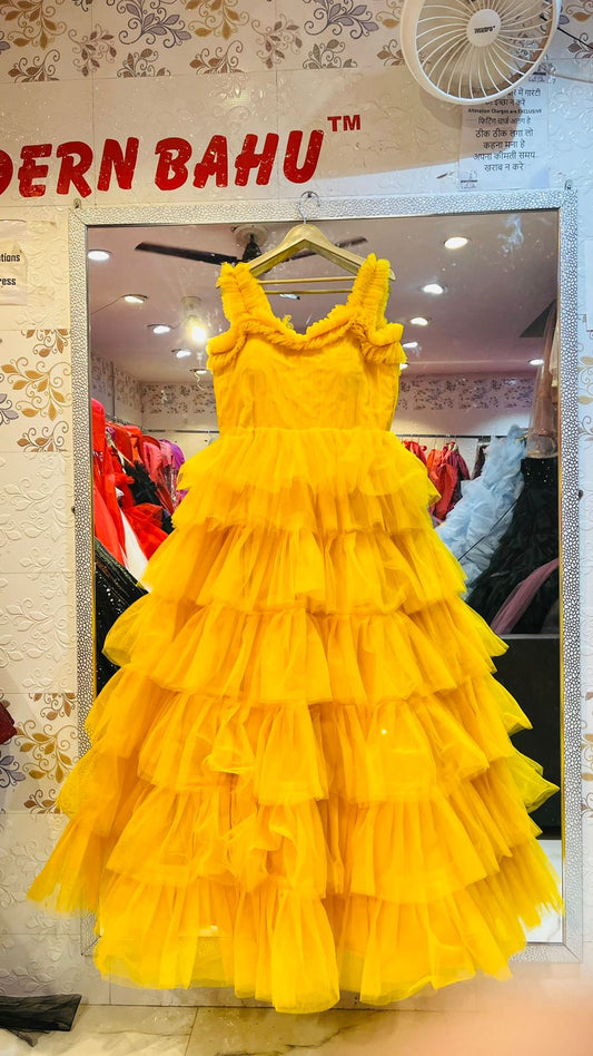 Ethereal Hue – Customizable Net Flare Gown (Made to Order)