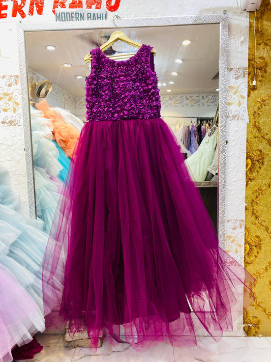 Enchanting Purple 3D Rosette Tulle Gown – Sleeveless Birthday & Party Wear