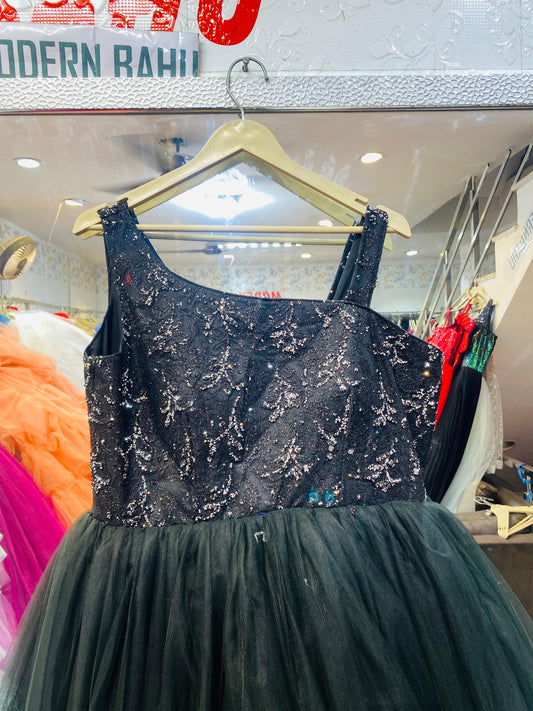 Glamorous Black Sequin Bodice Tulle Gown – Sleeveless Evening & Reception Wear