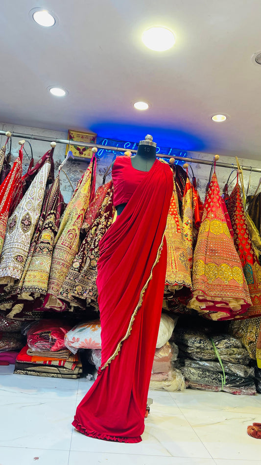Elegant Red Saree with Intricate Lace Work – Festive & Wedding Wear