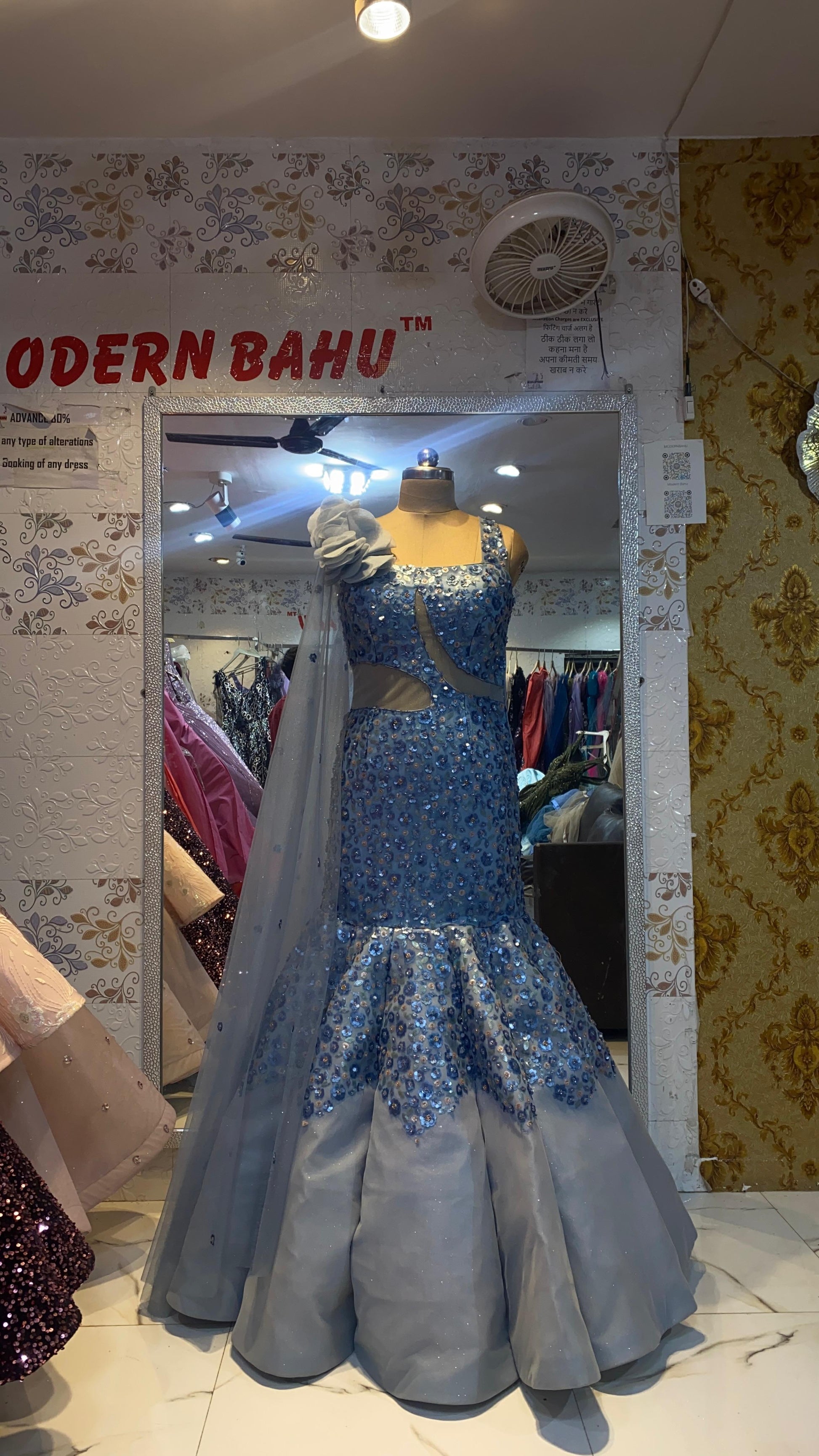 With intricate patchwork embroidery and a figure-enhancing fishcut silhouette, this piece is ideal for engagement ceremonies, parties, or wedding functions. The layered finish and tailored cut ensure every twirl is picture-perfect.