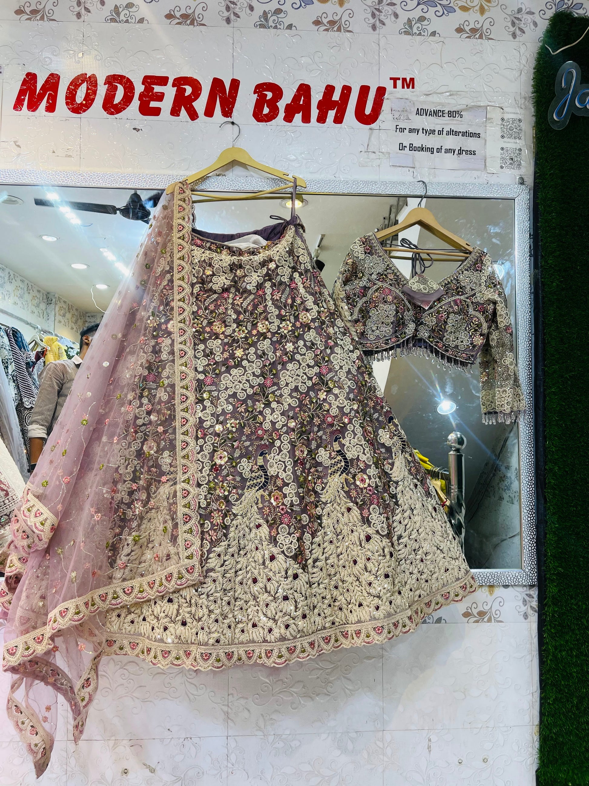Step into elegance with our Lite Purple Crop Top Lehenga featuring a majestic peacock article design. Crafted for grandeur, this ensemble comes with a heavy flare, rich handwork, and intricate detailing that makes it perfect for weddings, receptions, and festive occasions. The soft lilac hue adds a regal charm, while the designer crop top enhances your silhouette with a modern twist.