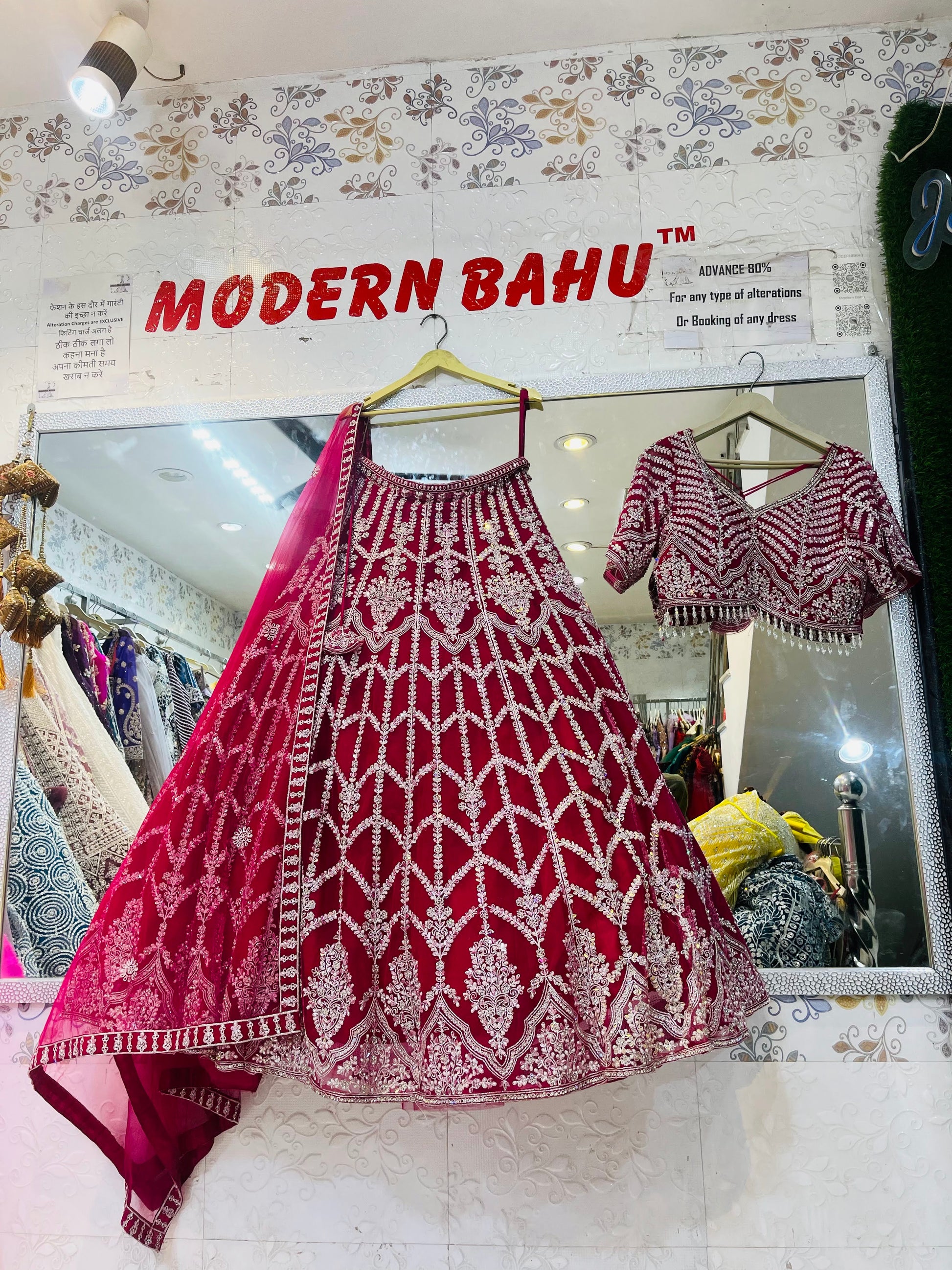 Radiant Red Crop Top Lehenga with Heavy Flare & Intricate Hand Work