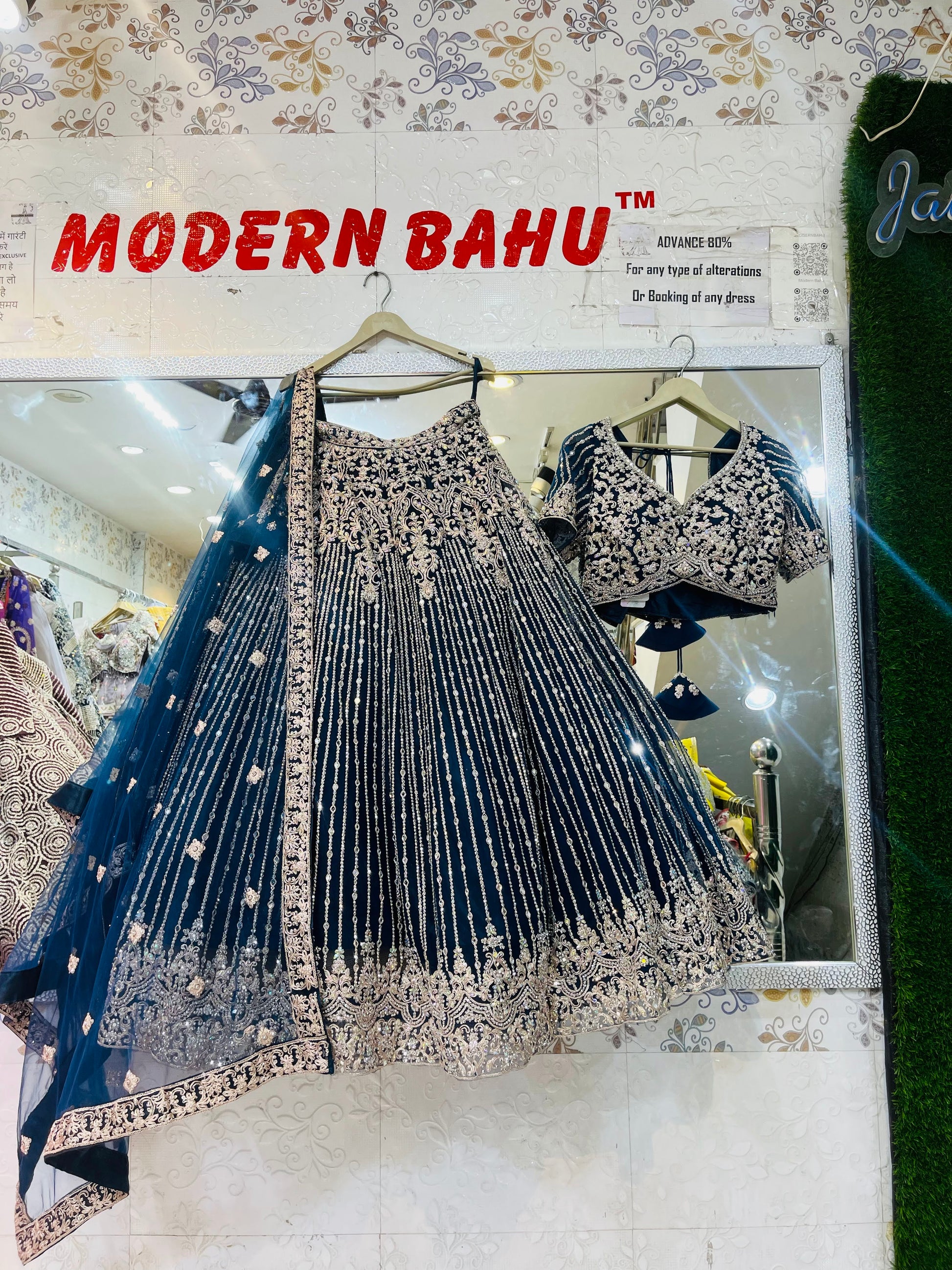 Royal Blue Handcrafted Crop Top Lehenga with Heavy Flare